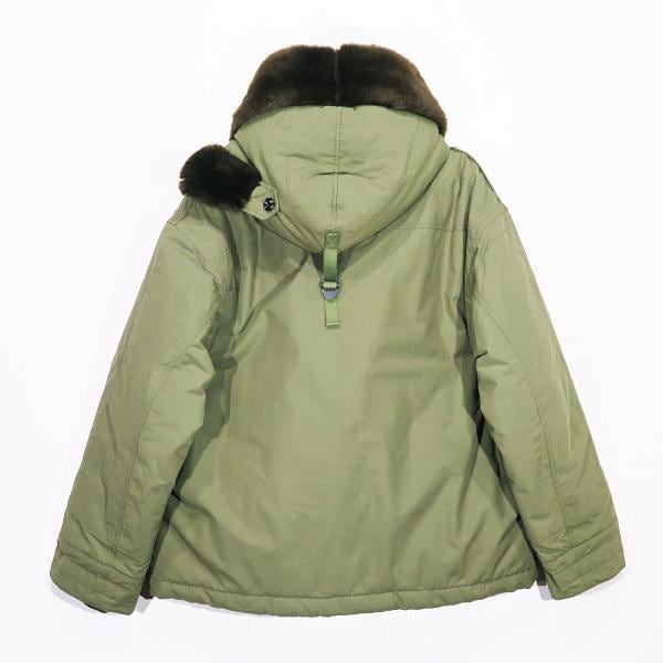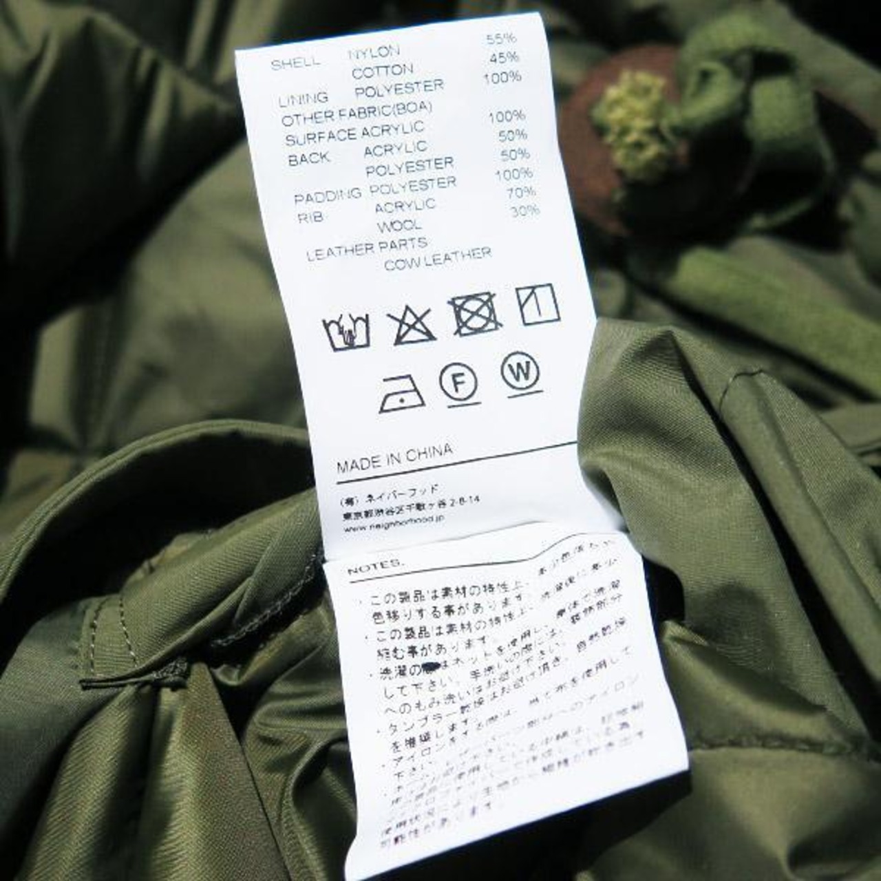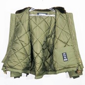 [素材] 表地:ナイロン 55%、コットン 45% 裏地:ポリエステル 100% 別地(ボア部分) 表面:アクリル 100% 裏面:アクリル 50%、ポリエステル 50% 中綿:ポリエステル 100% リブ部分:アクリル 70%、ウール 30% 革パーツ:牛革