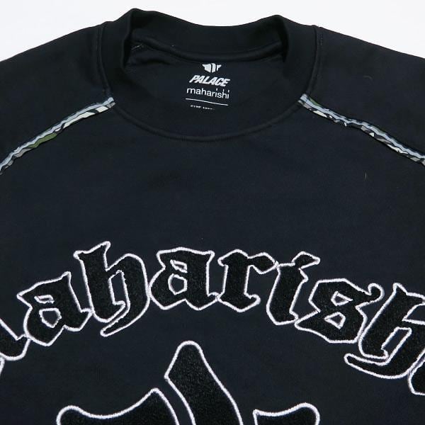 PALACE パレス x MAHARISHI マハリシ SCRIPT APPLIQUE CREW スクリプト アップリケ クルーネック スウェットシャツ ブラック トップス スエット サイズM aprz