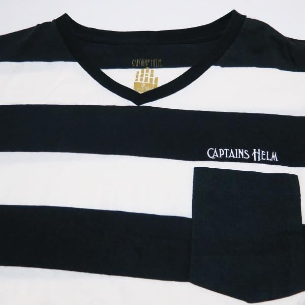 CAPTAINS HELM キャプテンズ ヘルム V-NECK BORDER POCKET TEE Vネック ボーダー ポケット Tシャツ ブラック ホワイト ショートスリーブ カットソー 半袖 サイズS aprz