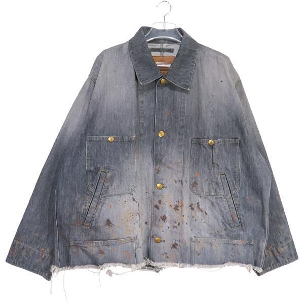 美品 DOUBLET ダブレット CUT OFF DENIM COVERALL 24AW47BL204 カット オフ デニム カバーオール ブラック ブルゾン オーバーサイズ ジャケット アウター サイズM mayk