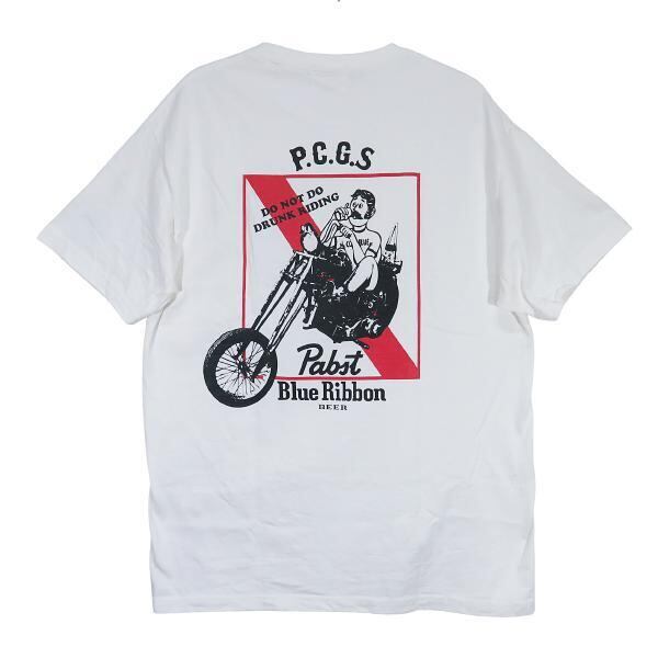 PORKCHOP GARAGE SUPPLY ポークチョップ ガレージ サプライ x Pabst Blue Ribbon パブストブルーリボン S/S TEE ショートスリーブ Tシャツ ホワイト 半袖 白 サイズL mayk