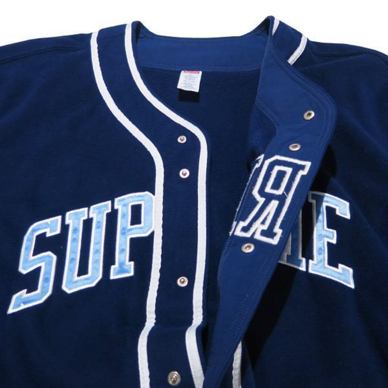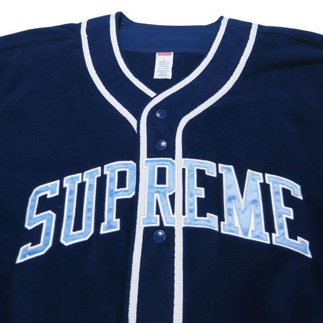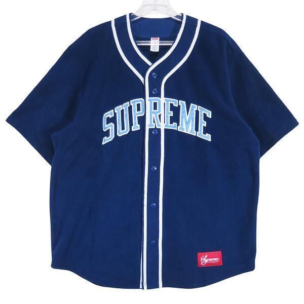 新品同様 SUPREME シュプリーム POLARTEC BASEBALL JERSEY ポーラテック ベースボール ジャージ− ネイビー ショートスリーブ フリース シャツ 半袖 サイズL junz