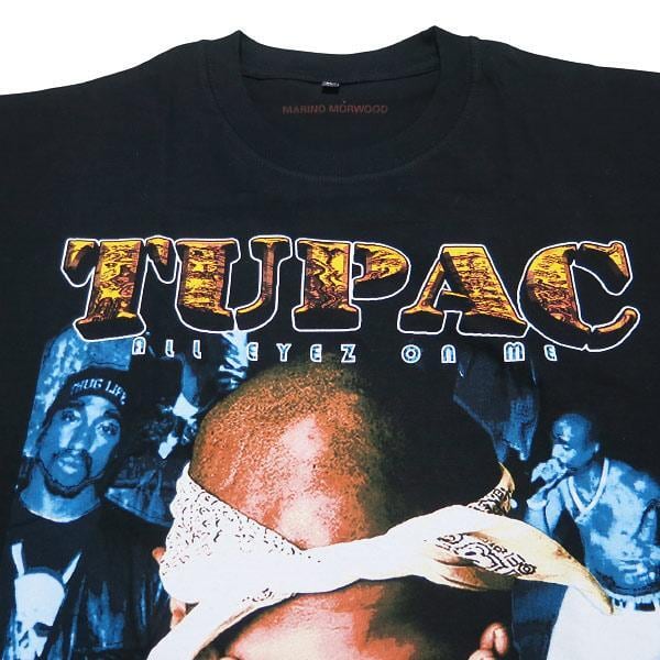 美品 MARINO MORWOOD マリノ モアウッド TUPAC TEE 2パック Tシャツ ブラック ショートスリーブ 半袖 黒 カットソー RAP TEE サイズXL junz