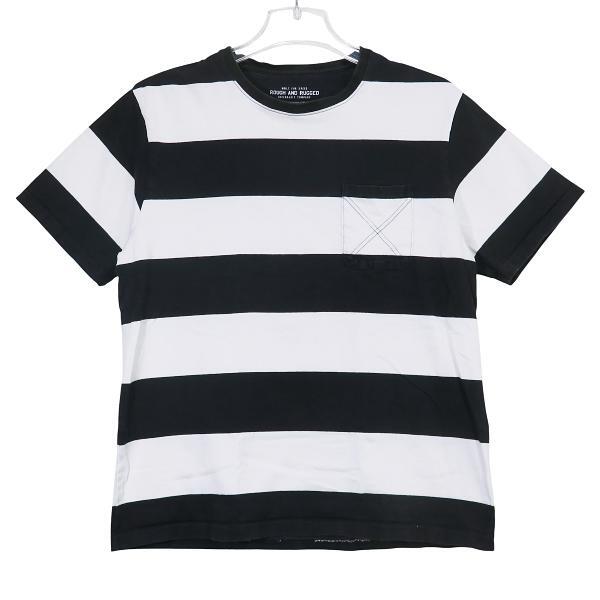 ROUGH AND RUGGED ラフ アンド ラゲッド BORDER POCKET TEE ボーダー ポケット ショートスリーブ Tシャツ ホワイト ブラック カットソー 半袖 サイズS sepz