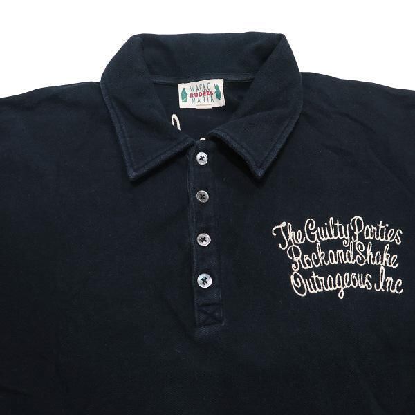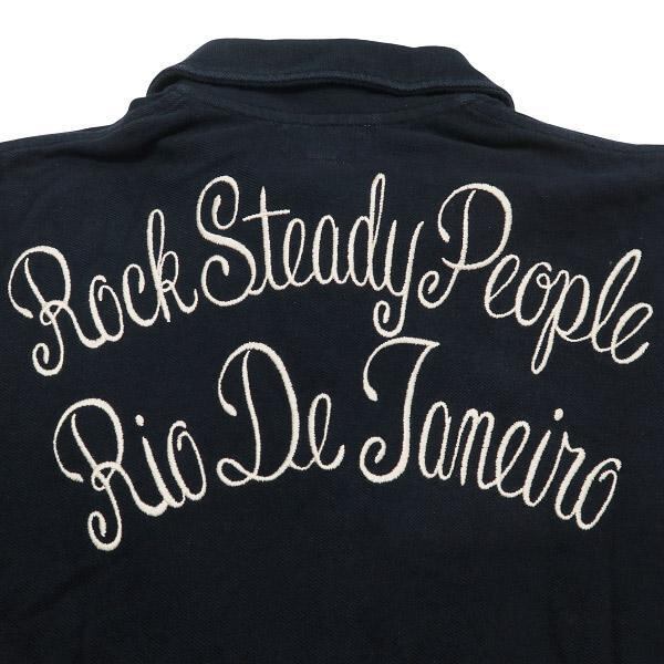 WACKO MARIA ワコマリア バック Rock Steady People Rio De Janeiro 刺繍 七分袖 ポロシャツ ブラック スリー クォーター スリーブ 長袖 サイズM sepz