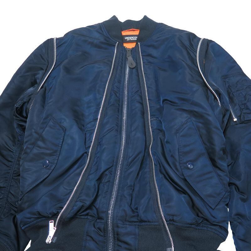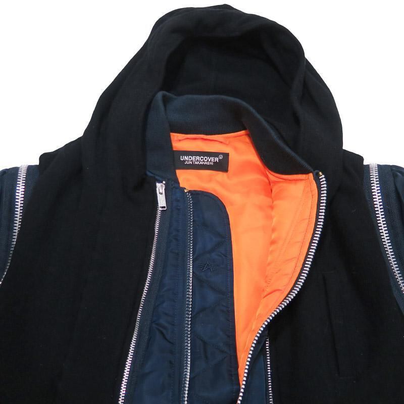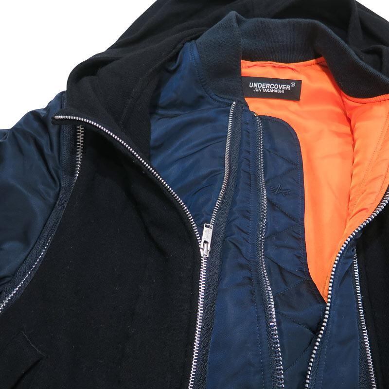 UNDERCOVER アンダーカバー x ALPHA INDUSTRIES アルファ インダストリーズ 縮絨フードベストレイヤードカスタムMA-1コート UC2A4315 アウター ジャケット ネイビー サイズ2 novk