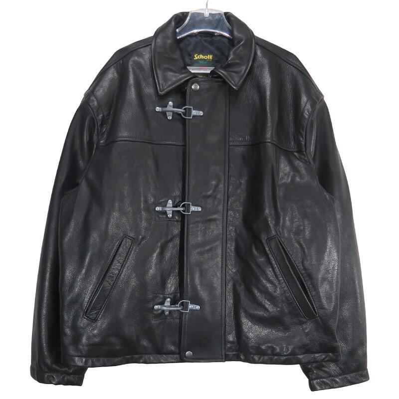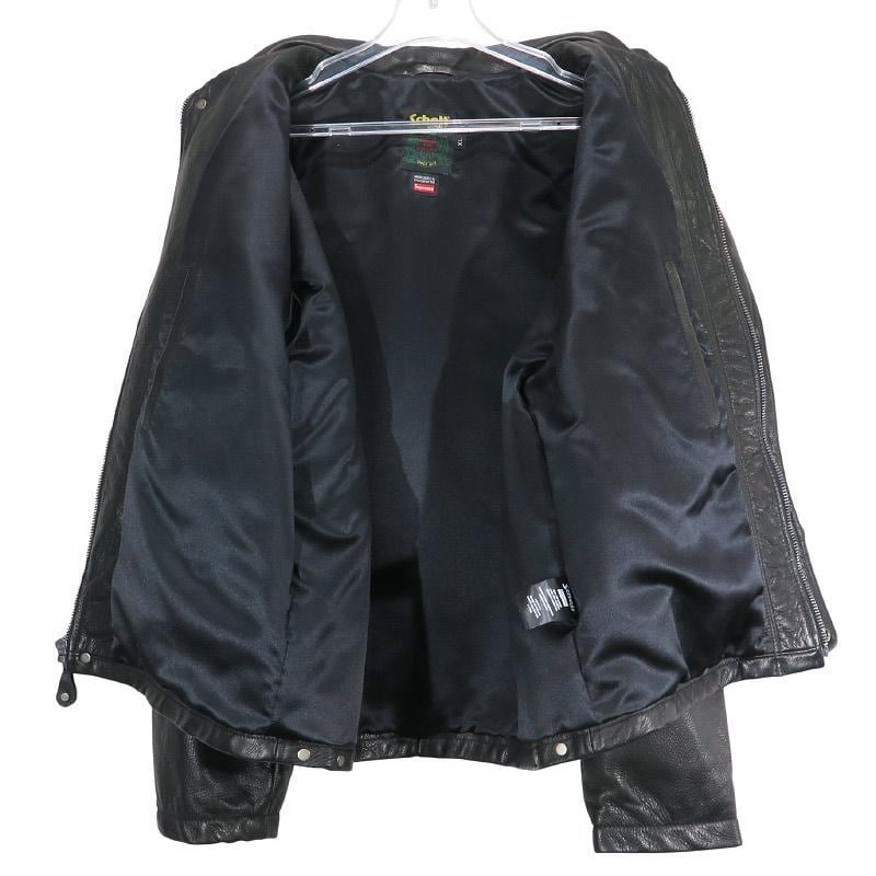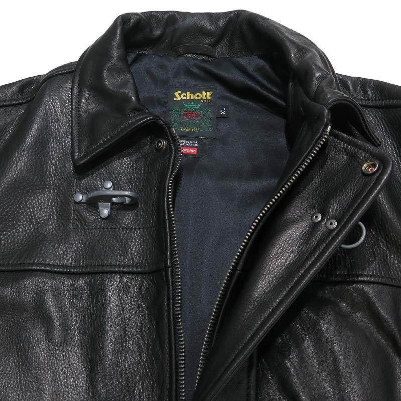 美品 SUPREME シュプリーム X Schott ショット 25SS LEATHER CLIP JACKET レザー クリップ ジャケット アウター ブラック サイズXL decz