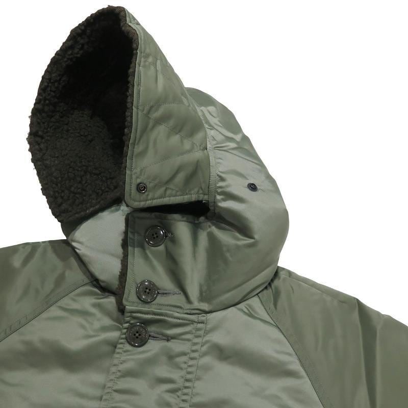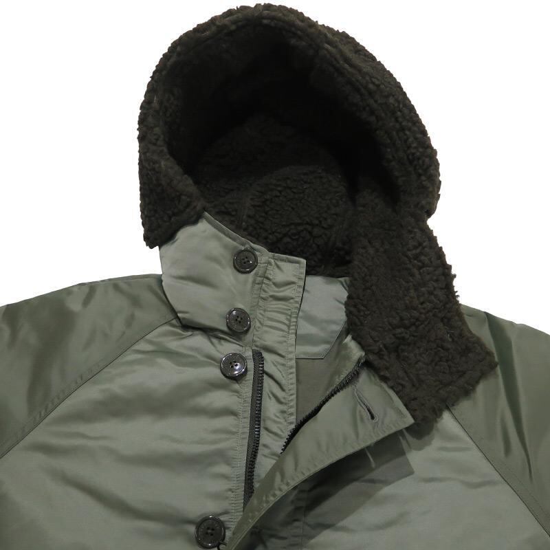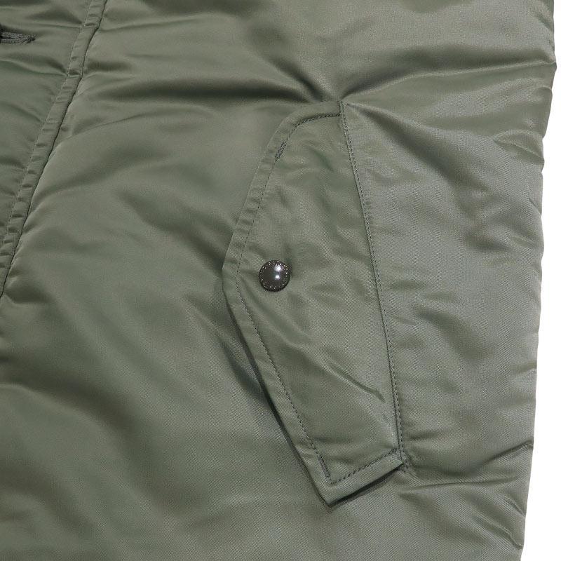 [素材] 表地:ナイロン 100% 裏地(身頃):ナイロン 100% 裏地(フード):ポリエステル 65%、アクリル 35% 中わた:ポリエステル 100% 別地(腰ポケット袋布):ポリエステル 100% 別地(内ポケット袋布):ナイロン 100% リブ:ウール 100%