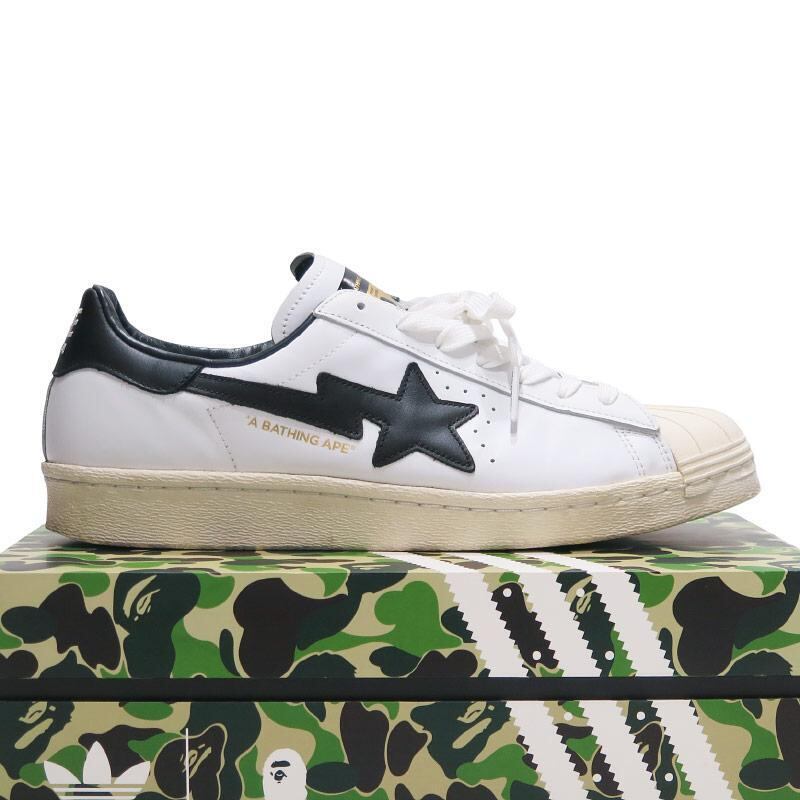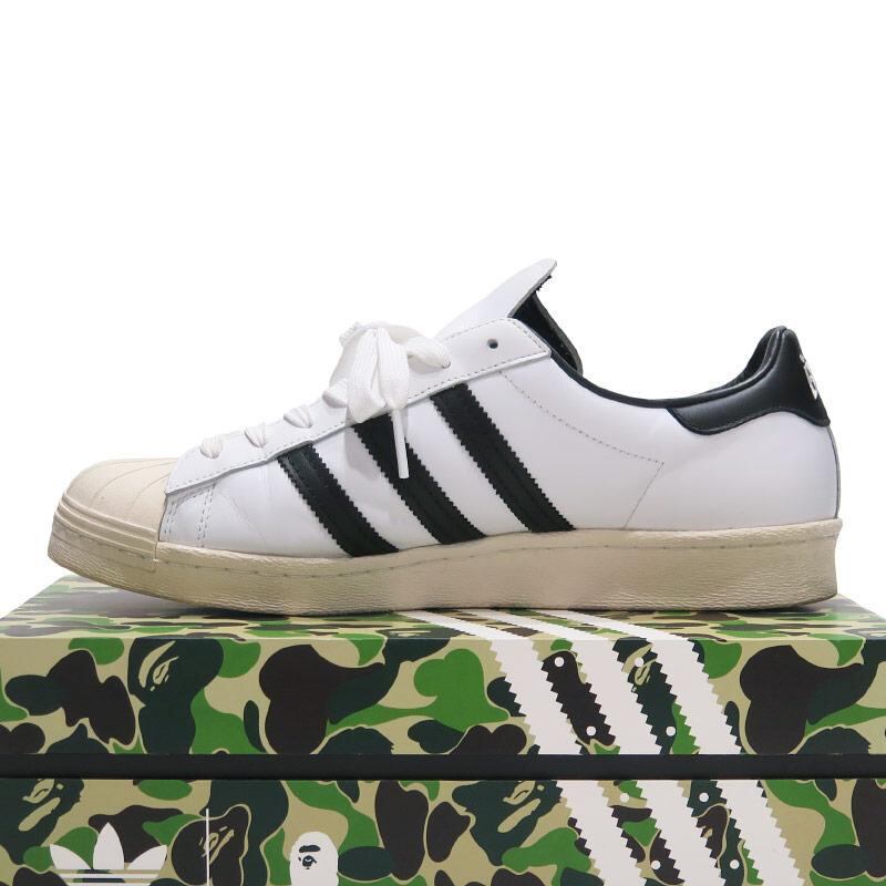 A BATHING APE ア ベイシング エイプ x adidas アディダス SUPERSTAR80s BAPE GZ8980 スーパースター ベイプ ホワイト ブラック スニーカー サイズ28.0cm US10 decz