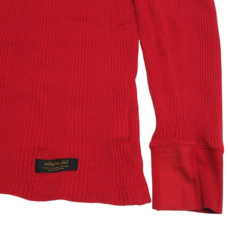 NEIGHBORHOOD ネイバーフッド 12AW WAFFLE.TP-3/C-CREW.LS 122ATNH-CSM05 ワッフル コットン クルーネック ロングスリーブ Tシャツ レッド ロンT サーマル カットソー 長袖 サイズXL Janz