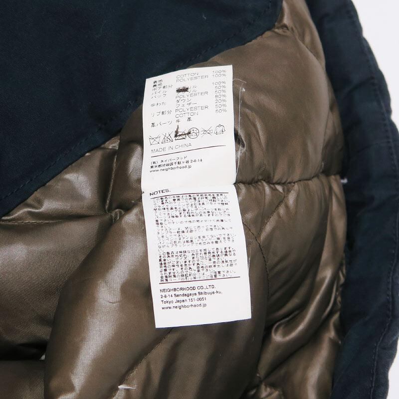 [素材] 表地:コットン 100% 裏地:ポリエステル 100% ボア部分 パイル:アクリル 100% バック:アクリル 50%、ポリエステル 50% 中わた:ダウン 80%、フェザー 20% リブ部分:ポリエステル 50%、コットン 50% 革パーツ:牛革