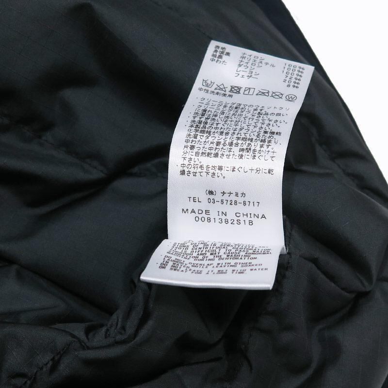 [素材] 表地:ナイロン 100% 身頃裏:ポリエステル 100% 袖裏:ナイロン 100% 中わた:ダウン 72%、レーヨン 20%、フェザー 8%