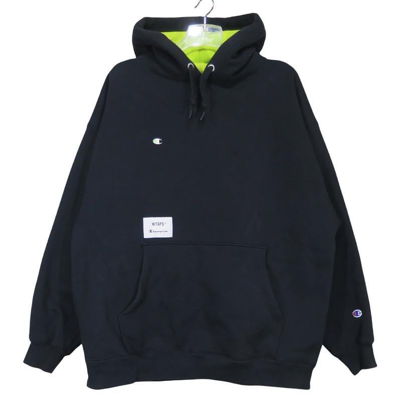 WTAPS ダブルタップス x Champion チャンピオン 22AW ACADEMY/HOODED/CTPL.CHAMPION 222HBCHD-CSM04S アカデミー フーデッド パーカー ブラック トップス フーディー サイズXL Febk