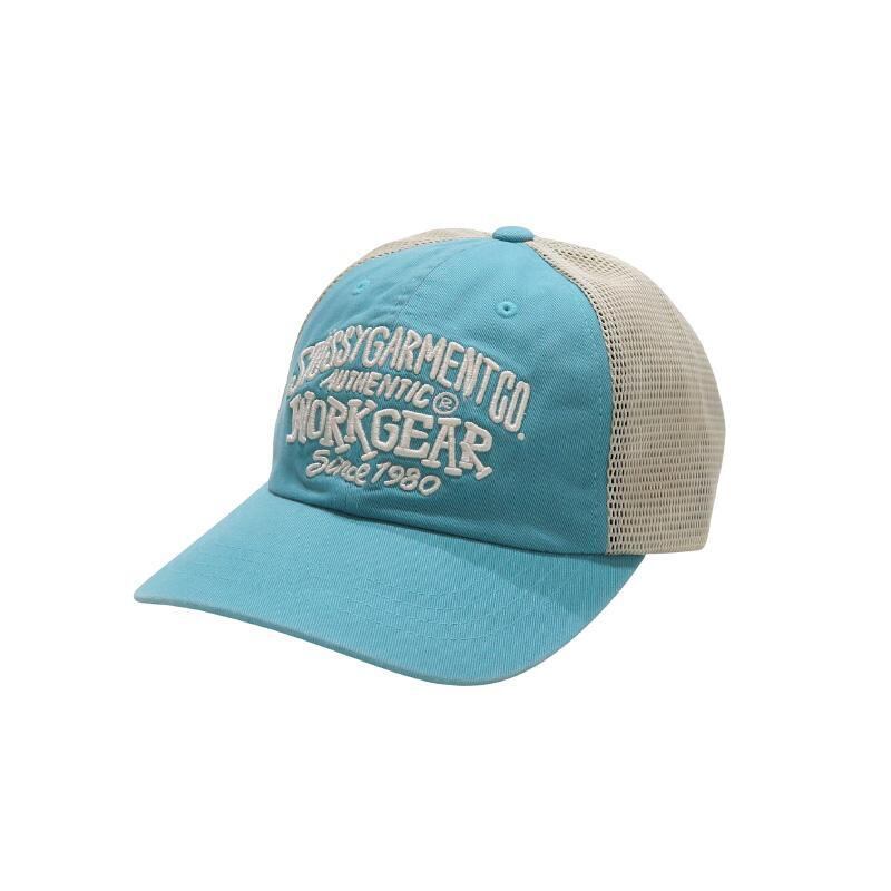 新品同様 STUSSY ステューシー LOW PROFILE WORKGEAR STRAPBACK CAP ロウ プロファイル ワークギア ストラップバック キャップ ティール メッシュキャップ 帽子 Marz