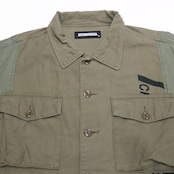 本体に2種類のコットンバックサテン生地を使用し、フロントに四つのフラップポケットを配置したコンバットシャツ。