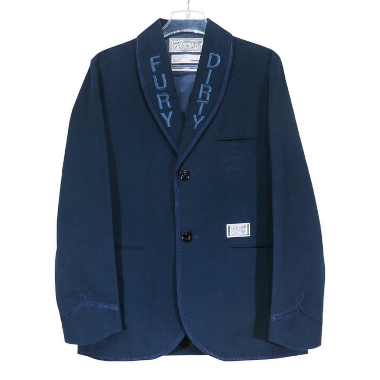 [備考] 左胸にピンズの穴、右袖に目立つシミ汚れが見受けられます。
