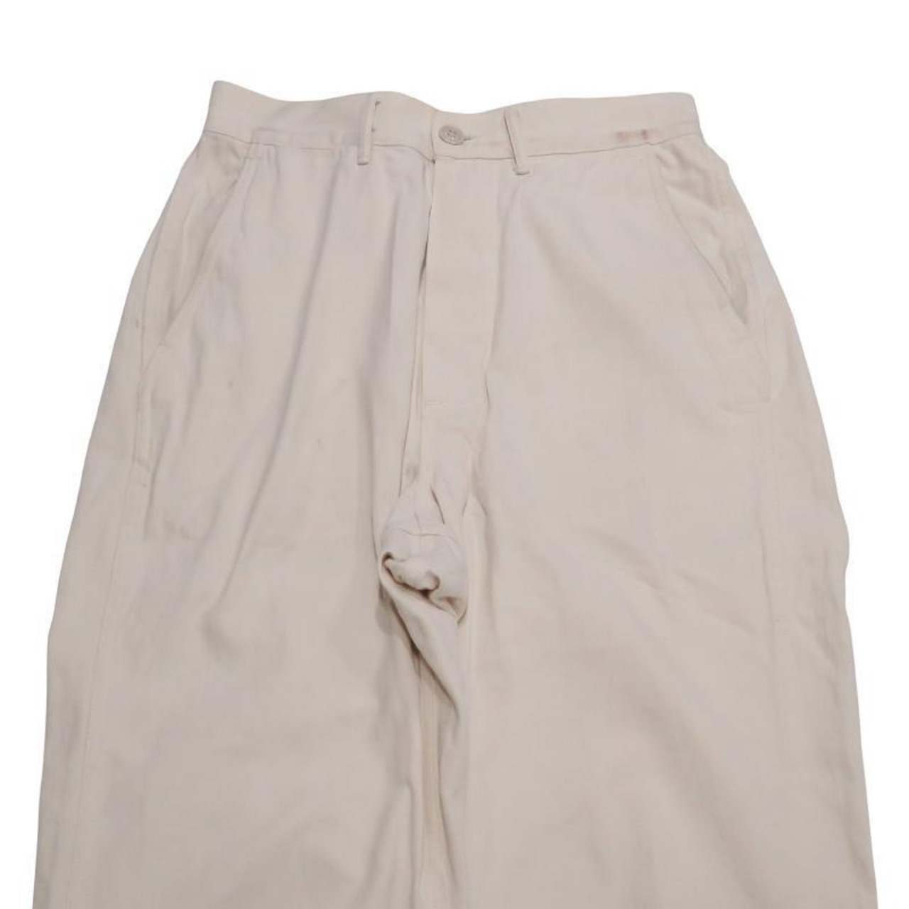 [備考] フロント右腿付近に薄い汚れ、ウエスト左に色移り、右膝付近に数点の汚れ、両足裾に黒ずみ、バック右ポケットに汚れが見受けられます。