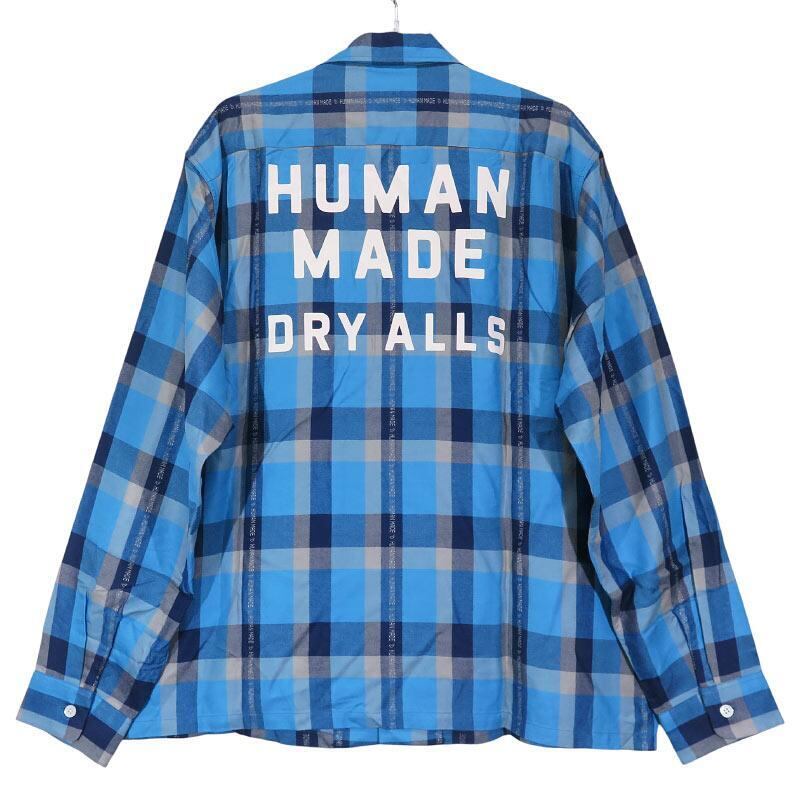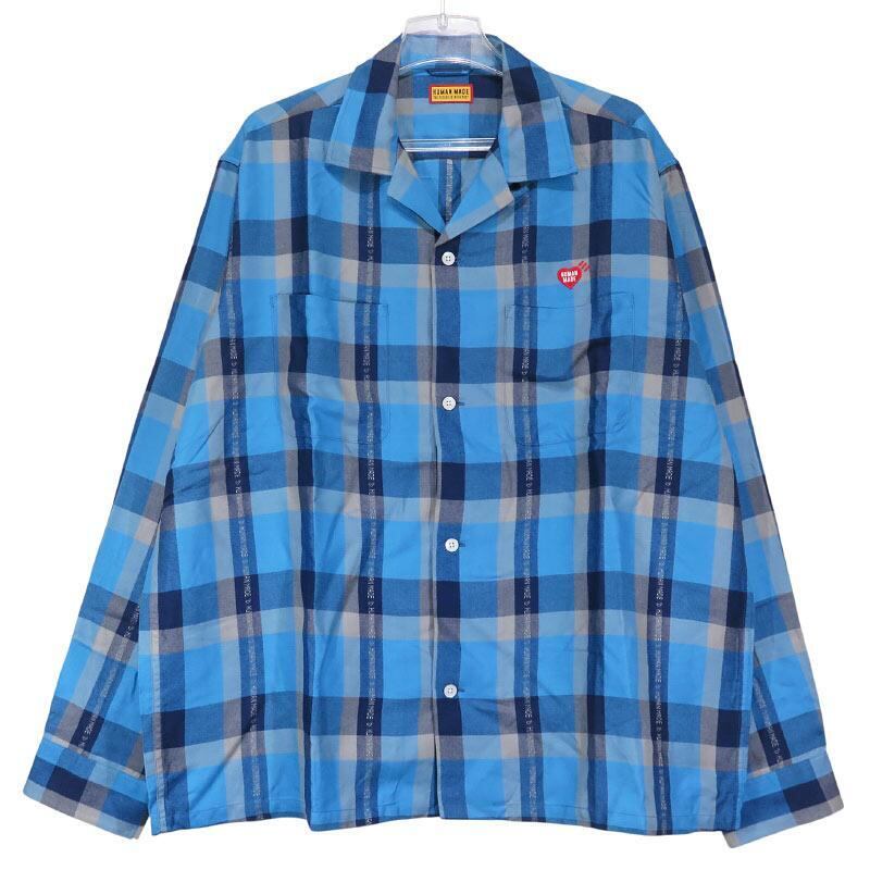 美品 HUMAN MADE ヒューマン メイド OPEN COLLAR CHECK SHIRT HM31SH013 オープンカラー チェック シャツ ブルー 青 長袖 サイズXXL Mark