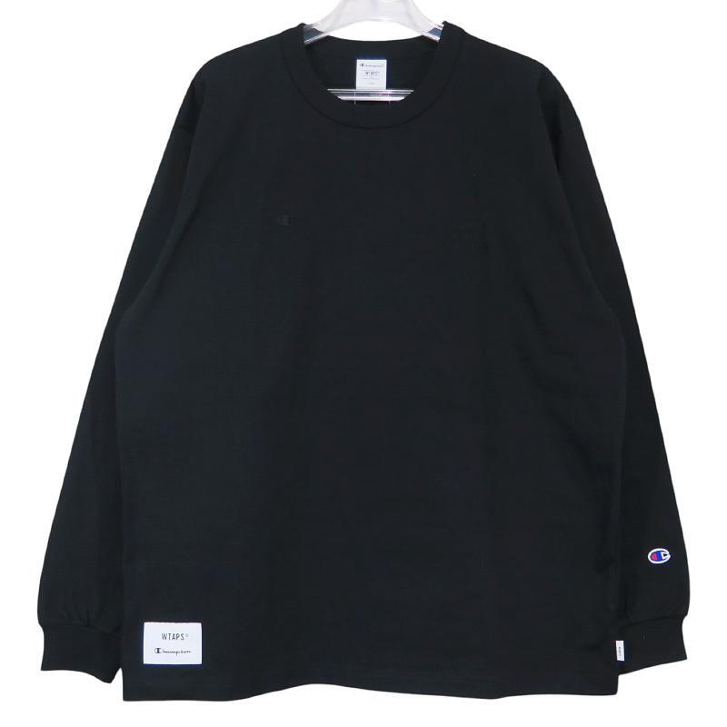 美品 WTAPS ダブルタップス x Champion チャンピオン 23AW ACADEMY/LS/COTTON.CHAMPION アカデミー ロングスリーブ コットン Tシャツ ブラック ロンT 長袖 サイズL Mark