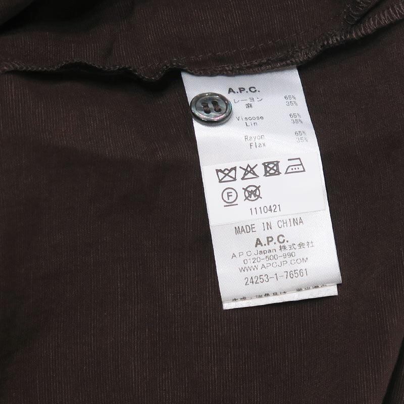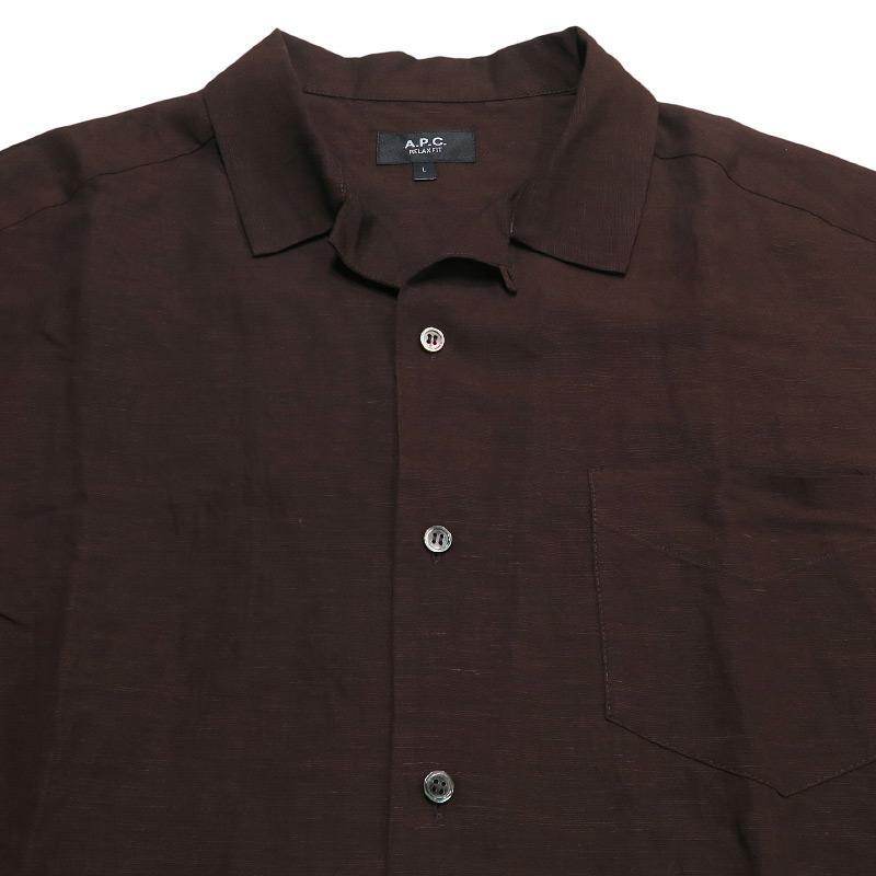 A.P.C. アーペーセー ROY S/S SHIRT 24253-1-76561 ロイ ショートスリーブシャツ ブラウン オープンカラー 開襟 茶色 半袖 サイズL Aprz
