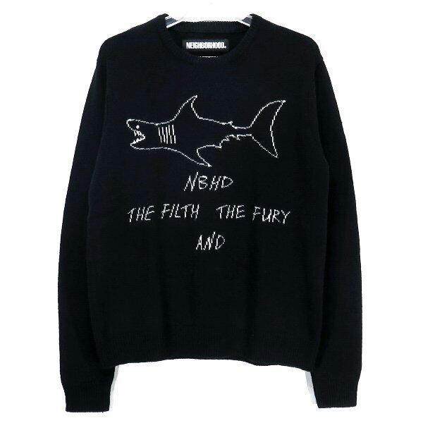 NEIGHBORHOOD ネイバーフッド 18AW SHARK SKIN/W-CREW.LS 182MANH-KNM01 シャークスキン ウール クルーネックニット ブラック セーター トップス サイズM【中古】