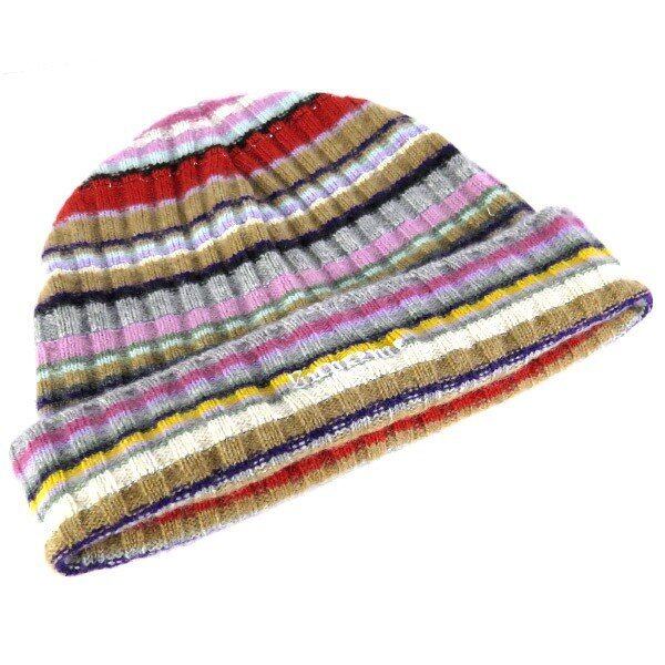 本体に柔らかな肌触りのカシミヤを使用したマルチカラーのボーダービーニーになります。
