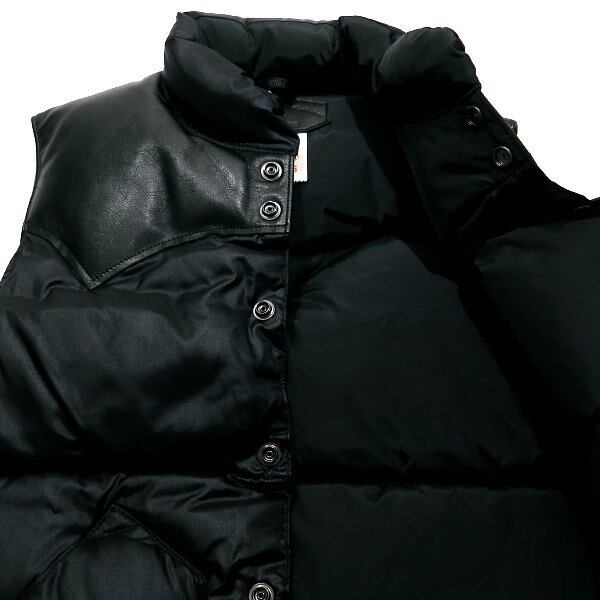 本体にはリップストップナイロンをベースにヨーク部分を牛革で切り替えた ROCKY MOUNTAIN らしいクールなダウンベスト。