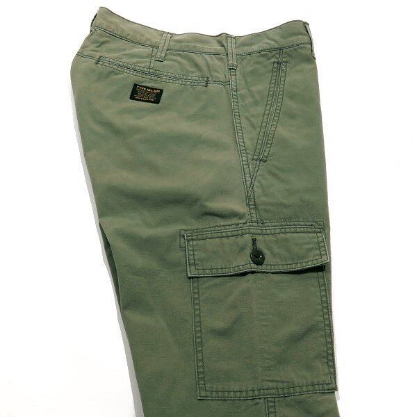 本体に製品加工が施された、少し凹凸のある織模様が特徴のコットンスラブ生地を使用した6ポケットカーゴパンツ。