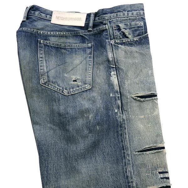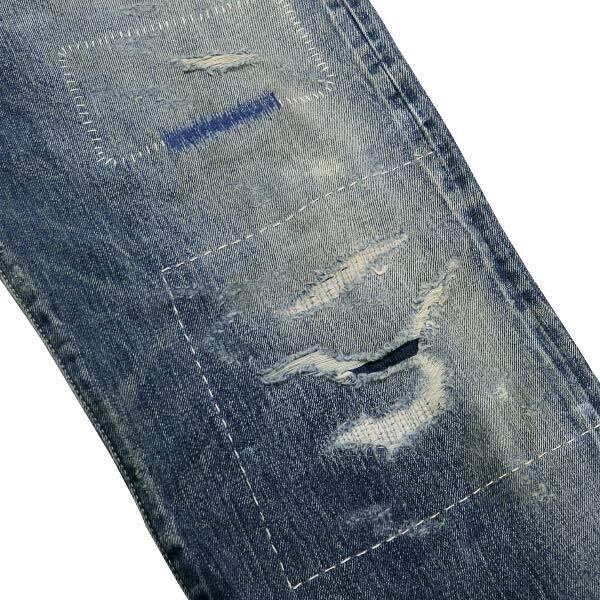 14オンスのオリジナルデニムをベースに、強いウォッシュ加工で立体的な陰影とリアルなダメージやリメイク加工を施した人気のサベージデニムパンツ。