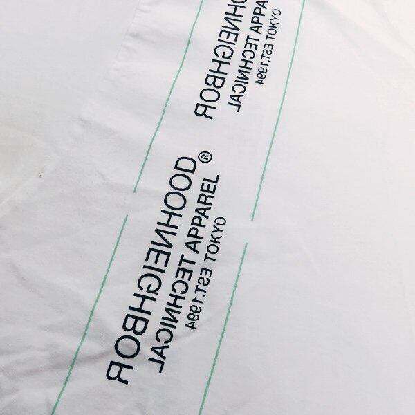 身頃右側フロントからバックにNEIGHBORHOODロゴを反転させたようにプリントしたロングスリーブTシャツになります。