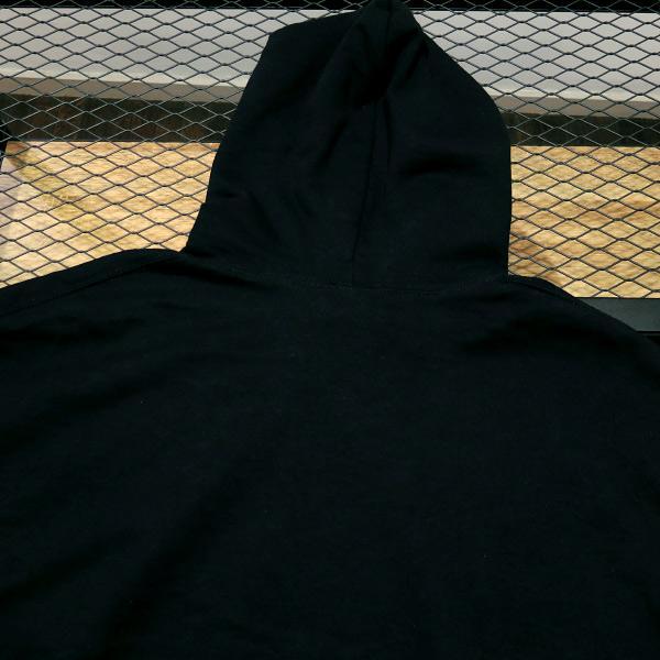 本体にコットンとポリエステル混紡の裏起毛ライトウェイトスウェット生地を使用したプルオーバーフーディーになります。
