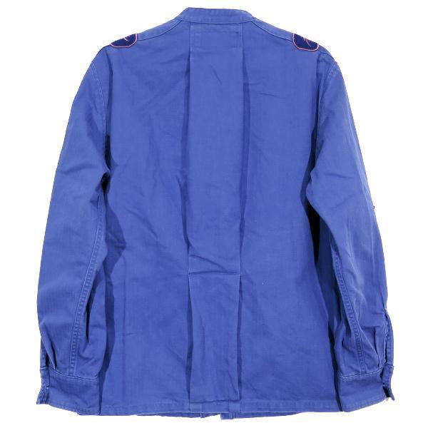 本体に厚手のコットンへリンボーン生地を使用したノーカラーシャツになります。