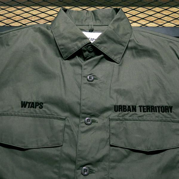 ブランド定番となるユーティリティーシャツをベースに、本体に少し薄手のコットンツイルを使用し、両胸にフラップポケット、その上にインシグニアではなく、WTAPSロゴ、URBAN TERRUTIRYロゴの刺繍が施されています。