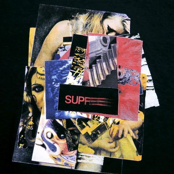 独特のコラージュしたグラフィックの中央にSUPREMEのモーションロゴを落とし込んだんクルークなデザイン。