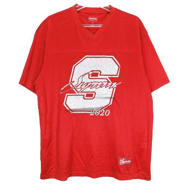 SUPREME 20SS GLITTER FOOTBALL TOP サイズL シュプリーム グリッター フットボール トップ レッド ショートスリーブ Tシャツ 半袖 【中古】