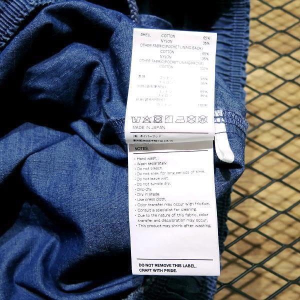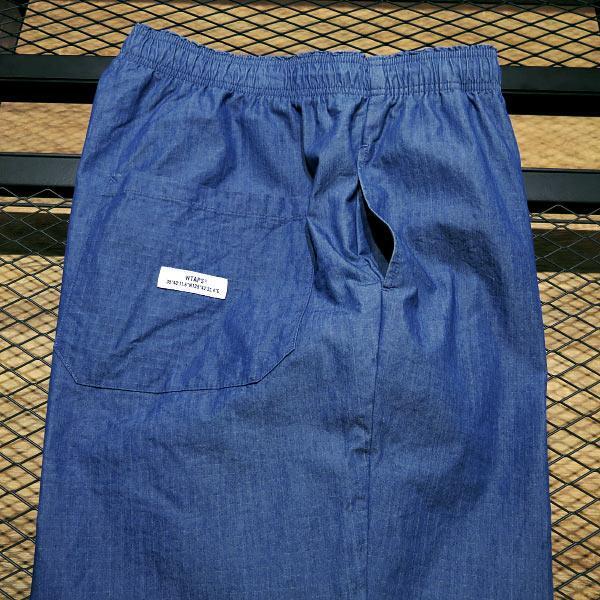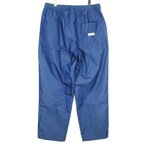 本体にコットンとナイロン混紡の薄手のリップストップデニム生地を使用した、ウエストゴムとドローコード調節のイージーパンツになります。